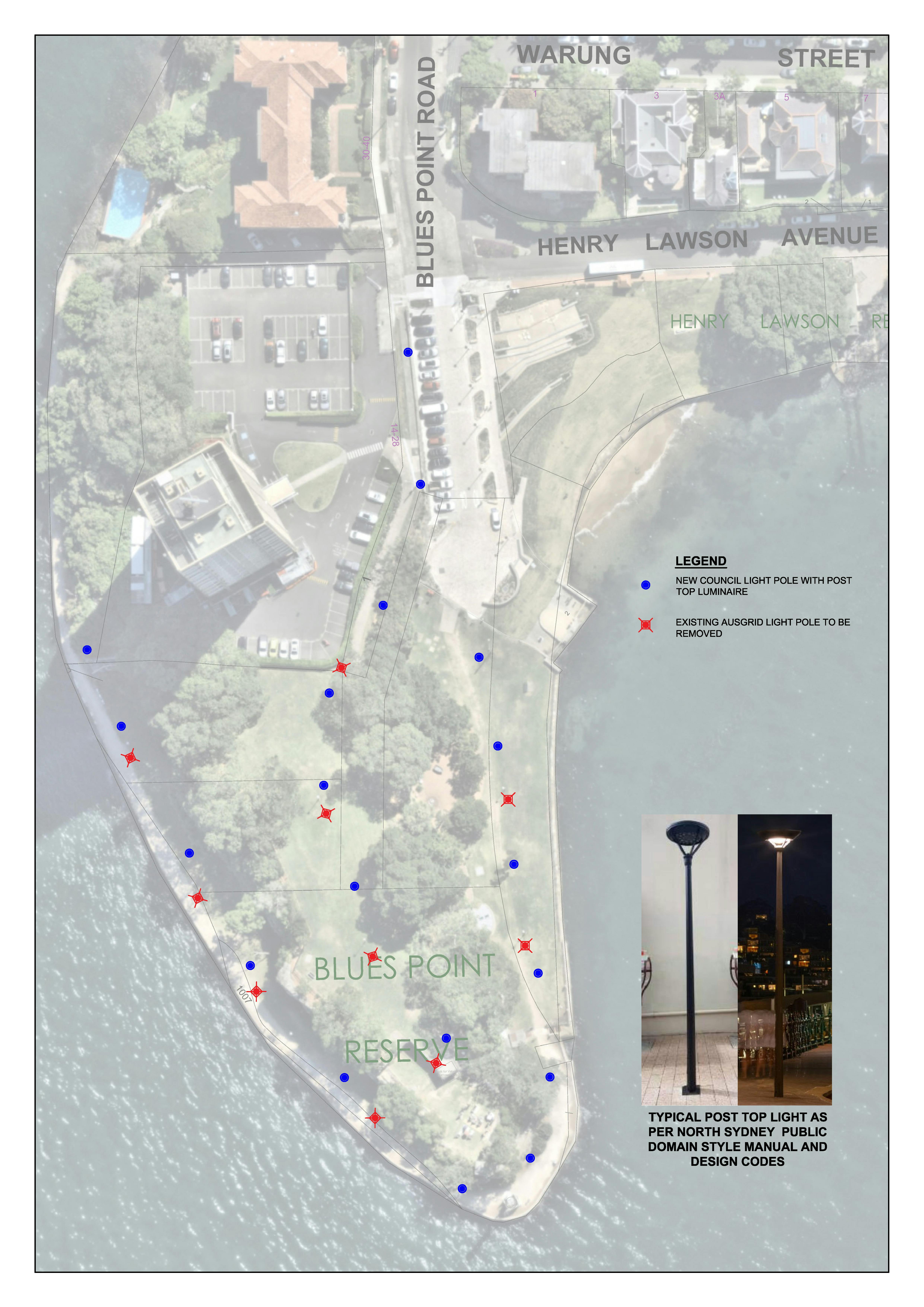 - improves night-time safety and visibility in Blues Point Reserve.